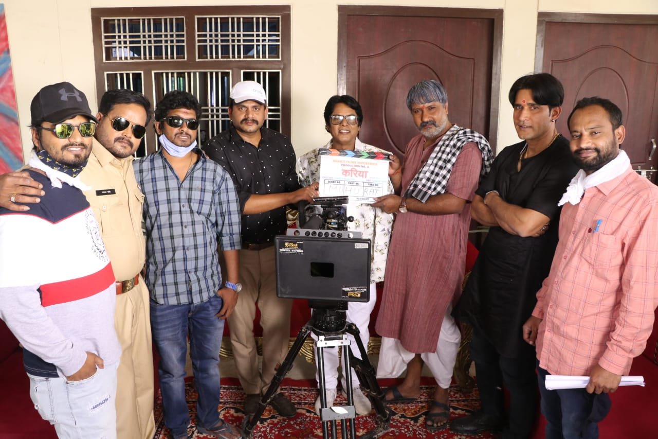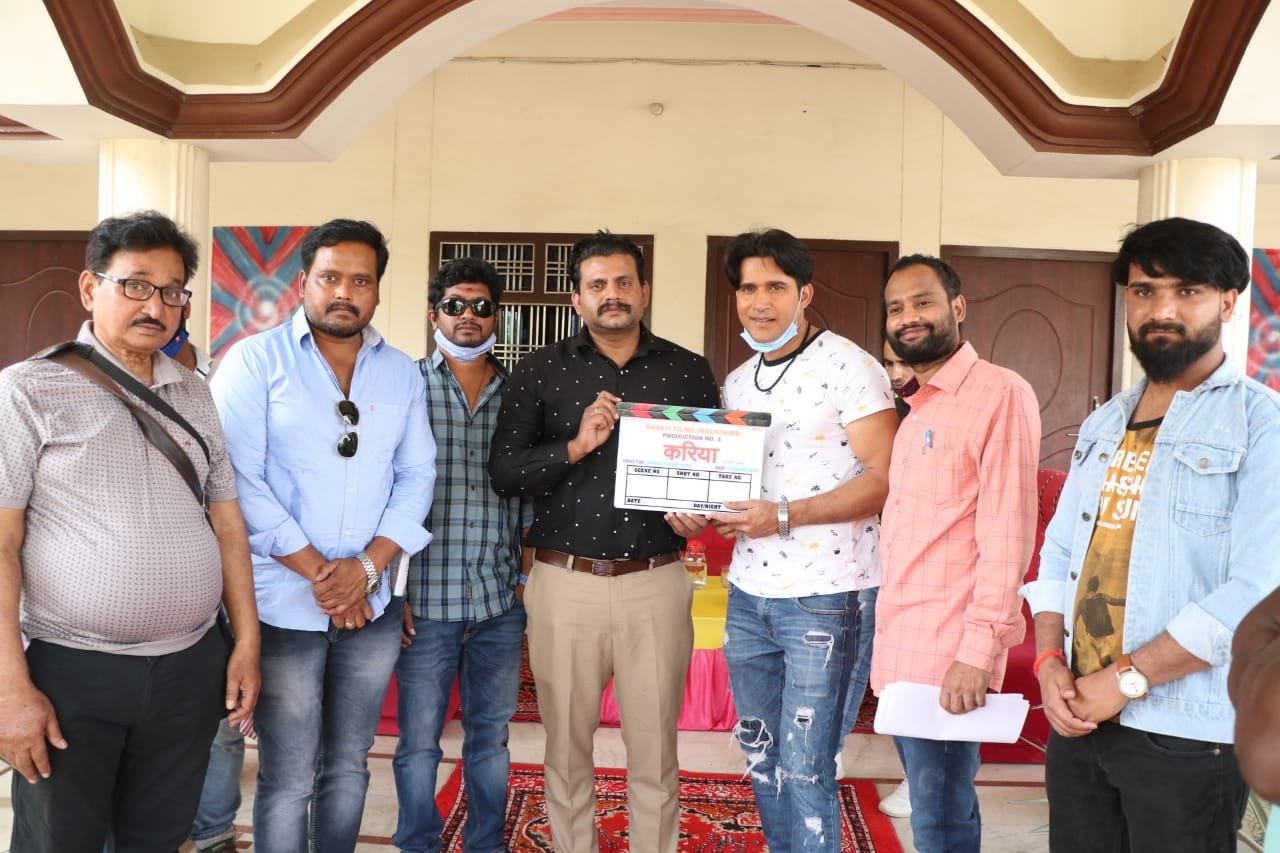 मुंबई : चैत्र नवरात्रि के प्रथम दिन के शुभ अवसर पर उत्तर प्रदेश के जिला देवरिया में फिल्म करिया का शुभ मुहूर्त करके शूटिंग शुरू कर दी गई है। लेखक, निर्देशक, निर्माता और हीरो अंगद कुमार ओझा की फ़िल्म करिया का मुहूर्त के शुभ अवसर पर फर्स्ट लुक भी जारी किया गया है। फर्स्ट लुक में अंगद ओझा एक्शन अवतार में नजर आ रहे हैं। बेहतरीन बॉडी और हाथ में हथियार लिए अंगद ओझा का लुक काफी इम्प्रेसिव लग रहा है। मगर उनका फेस रिवील नहीं किया गया है। यह फिल्म साउथ और भोजपुरी 2 भाषाओं में बनाई जा रही है। साउथ और भोजपुरी दोनों भाषाओं की फिल्मों में अलग-अलग वेरिएशन होगा।