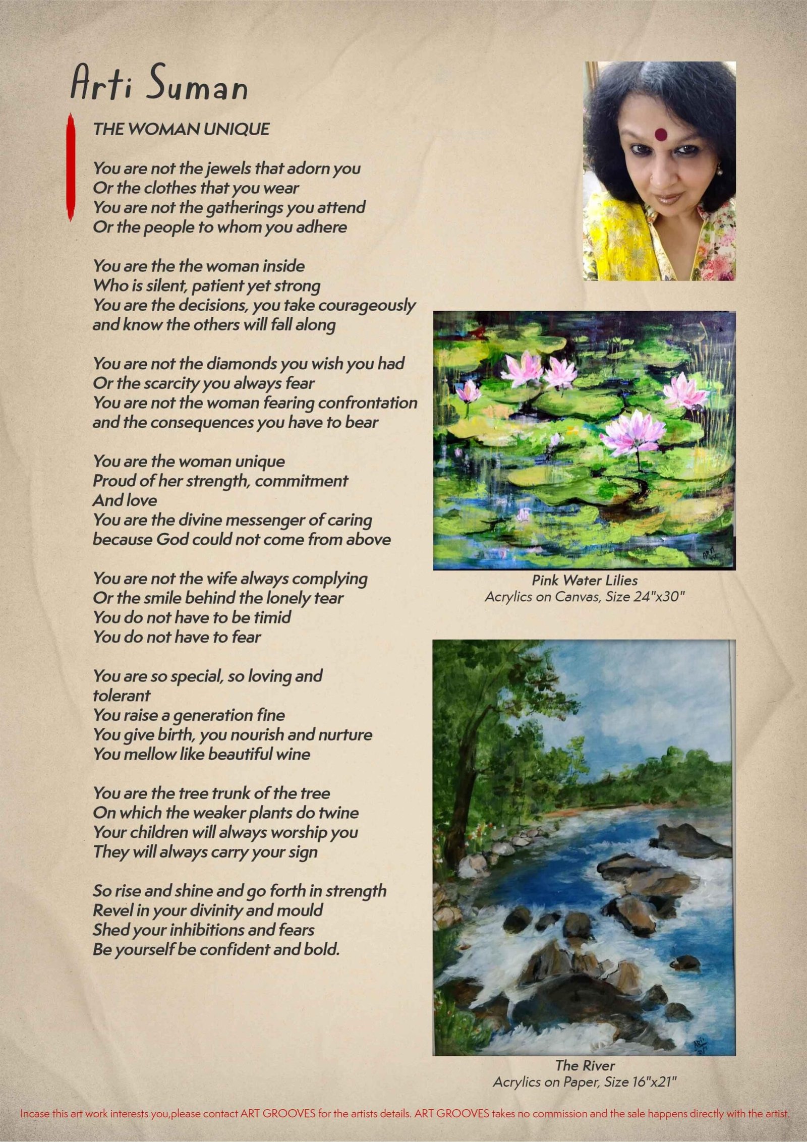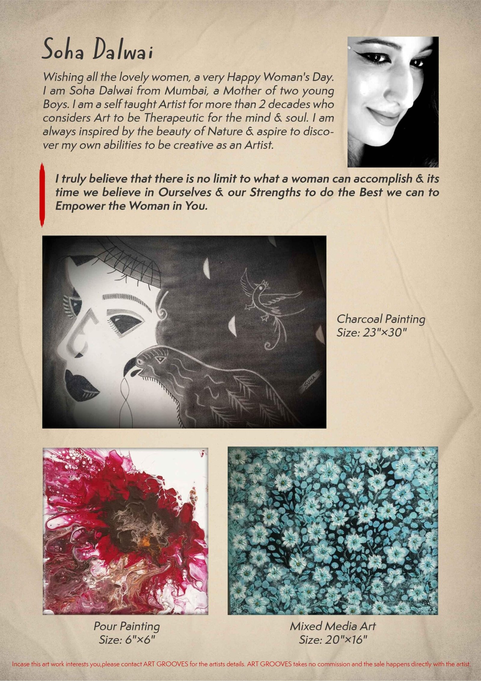 ART GROOVES, founded by Poornima Dayal, a Mumbai based artist brings to you a special e -catalog of art works by amazing Indian woman artists from across the globe. Aiming at rejoicing Indian art and heritage, ART GROOVES appreciates talent and gives them a platform to display their works. Open to both men and women artists, it has been holding regular online Art Meet’s where artists display their works and speak about their inspirations.