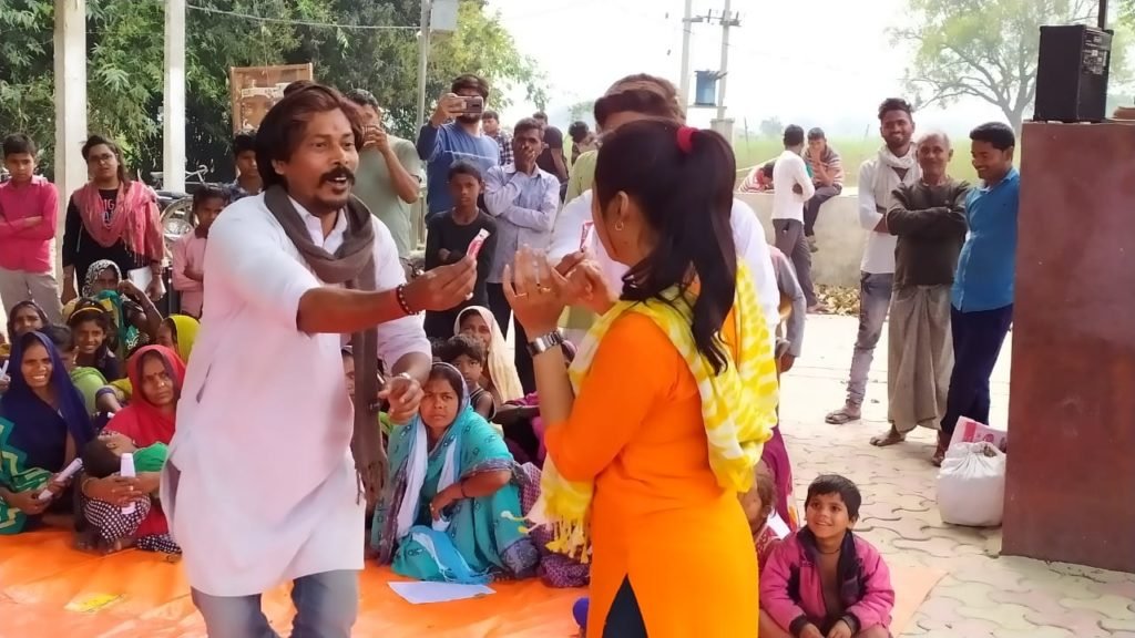अभियान के अगली श्रृंखला में लक्ष्य नाट्यम की टीम के द्वारा “क्या करे क्या न करे” घरेलू हिंसा यौन उत्पीड़न,प्रजनन स्वास्थ्य, पोषण पर आधारित नुक्कड़ नाटक का मंचन किया गया तथा नागेपुर गांव की गली गली में घूम घूम कर साइकिल यात्रा निकाल कर गांव के लोगों को घरेलू हिंसा यौन उत्पीड़न मुक्त समाज की स्थापना के लिए जगरूक करते हुए अपनी भूमिका निभाने का आग्रह किया । जिम्मेदार पितृत्व के द्वारा ही सम्पूर्ण अभियान में मंच संचालन विकास बाजपेई जी द्वारा किया गया एवम शाधिका टीम से सरिता, रणविजय, फौजिया , अर्पित, महेंद्र, प्रिया,बाबू थापा, मुरारी ,दिनेश ,रामाश्रय ,बाल प्रधान आकांक्षा, रूपा, नेहा, अवंतिका ,कृष्णा,चांदनी आदि अभियान में उपस्थित रहे