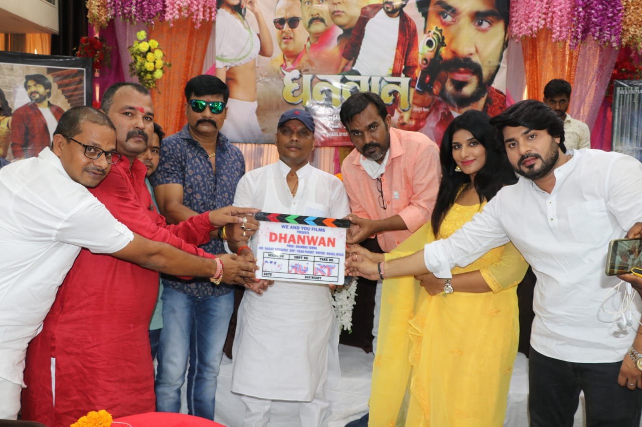 मुंबई : फिल्म निर्माता शम्भू वर्मा की वी एंड यू फिल्म्स बैनर के तले बन रही भोजपुरी फिल्म धनवान का भव्य मुहूर्त उत्तर प्रदेश के संत कबीरदास जी की पावन धरती खलीलाबाद के सोनी होटल में धूमधाम से किया गया। फिल्म के मुहूर्त के शुभ अवसर पर फिल्म के नायक राघव पांडेय, नायिका पूनम दूबे, अभिनेता राघवेन्द्र पांडेय, बन्टी बाबा सहित कई कलाकार, फ़िल्म निर्माता शम्भू वर्मा, निर्देशक संजय श्रीवास्तव, लेखक शकील नियाजी, सिनेमाटोग्राफर विकास पांडेय इत्यादि फ़िल्म की पूरी टीम उपस्थित रही। मुहूर्त के मौके पर मुख्य अतिथि के रूप में कई शैक्षिक संस्थानों के प्रबंधक व वरिष्ठ समाजसेवी डॉ. उदय प्रताप चतुर्वेदी मौजूद थे, उनका भोजपुरी सिनेमा के प्रति खास लगाव है। उन्होंने फ़िल्म की पूरी टीम को बधाई एवं शुभकामनाएं दी। साथ ही महेंद्र यादव अमिताभ यादव दानिश खान रत्नेश मिश्रा बलराम यादव सौरभ सिंह छात्रसंघ अध्यक्ष, राघवेन्द्र यादव, महेश वर्मा आदि गणमान्य हस्तियाँ मौजूद थीं। सभी महानुभावों ने पूरी टीम को बधाई देते हुए फिल्म की सफलता की कामना की।