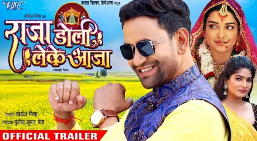 दशहरा के शुभ अवसर पर भोजपुरी सिनेमा के जुबली स्टार व सांसद दिनेश लाल यादव निरहुआ और यूट्यूब क्वीन आम्रपाली दुबे, श्रुति राव के लाजवाब अभिनय से सजी भोजपुरी फिल्म ‘राजा डोली लेके आजा’ का ट्रेलर दर्शकों के बीच आया है. यह ट्रेलर वेव म्यूजिक के ऑफिशियल यूट्यूब चैनल से रिलीज किया गया है. ट्रेलर में दिखाया गया है कि दिनेश लाल यादव निरहुआ गांव का एक नवयुवक है, जिसकी शादी आम्रपाली दुबे से हो जाती है, जबकि वह दूसरी नायिका श्रुति राव से मोहब्बत करता है. कुछ ऐसी परिस्थिति आ जाती है कि पहली पत्नी के समझाने पर नायक दूसरी शादी करने को तैयार हो जाता है और फिर शुरू होता है वियोग और ड्रामा. प्रेम, समर्पण, वियोग, फैमिली ड्रामा से भरपूर इस फिल्म का ट्रेलर ट्रेलर फुल एंटरटेनिंग है. इस फिल्म को बड़े कैनवास पर बनाया गया है, जिसकी भव्यता ट्रेलर में दिख रही है. फिल्म की मेकिंग में काफी खर्च भी किया गया है. दर्शकों के बीच एक बेहतरीन और मनोरंजनपूर्ण फिल्म आ रही है, उम्मीद है कि यह फ़िल्म दर्शकों को खूब पसंद आएगी. इस फ़िल्म में केंद्रीय भूमिका में दिनेशलाल यादव, आम्रपाली दूबे और श्रुति राव हैं. उनकी केमिस्ट्री काफी मजेदार है.