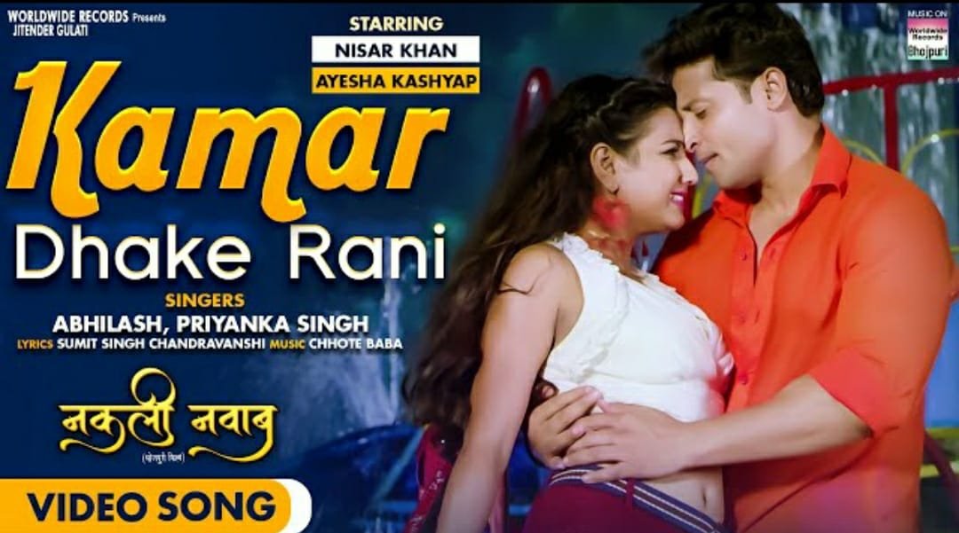 भोजपुरी के फ़िल्म स्टार निसार खान और आयशा कश्यप के लाजवाब अभिनय से सजी भोजपुरी फिल्म ‘नकली नवाब’ का नया गाना ‘कमर धके रानी’ वर्ल्डवाइड रिकार्ड्स भोजपुरी के ऑफिसियल यूट्यूब चैनल पर रिलीज किया गया है। इस सांग में अभिनेता निसार खान और अभिनेत्री आयशा कश्यप का रोमांटिक अंदाज देखने को मिल रहा है। गाने में दोनों ही कलाकारों की केमेस्ट्री देखने लायक है जो कि रोमांस से भरपूर दिख रहा है। इस सांग को अभिलाष और प्रियंका सिंह ने गाया है। गीत लिखा है सुमित सिंह चन्द्रवंशी ने, जिसे संगीत से सजाया है संगीतकार छोटे बाबा बसही ने।