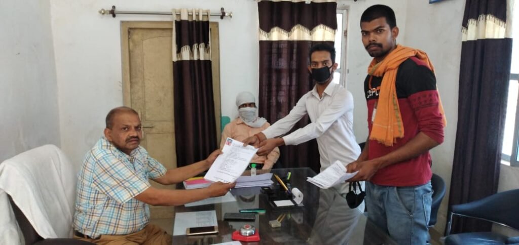 ठेला फुटपाथ व्यापारियों के आर्थिक मदद हेतु व्यापार प्रकोष्ठ द्वारा जमा किया गया फार्म