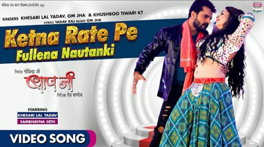 सुपरस्टार खेसारी लाल यादव और आईटम क्वीन संभावना सेठ का स्टेज वाला धमाल गाना “कितना रेट पे फूलैना नौटंकी” रिलीज होते ही वायरल हो गया है। यह गाना वर्ल्डवाइड रिकार्ड्स भोजपुरी के ऑफिसियल यूट्यूब चैनल से रिलीज किया गया है। इस धमाल वीडियो सांग में खेसारीलाल यादव और संभावना सेठ की केमेस्ट्री देखने लायक है। इस गाने का पोस्टर और टीज़र सोशल मीडिया पर आउट होते ही काफी वायरल हो गया था और फैन्स इस गाने का इंतजार कर रहे थे। यह गाना भोजपुरी फिल्म बाप जी का है।