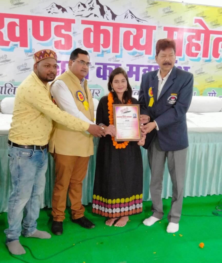 हाल ही में विश्व रिकॉर्ड में अपना नाम दर्ज करने वाली उत्तराखंड की प्रसिद्ध बुलंदी साहित्यिक संस्था ने 14 नवंबर 2021 को नगर निगम परिसर में ‘उत्तराखंड काव्य महोत्सव’ का सफल कवि सम्मेलन आयोजित करवाया | मुख्य अतिथि के रूप में मेयर रामपाल जी ने कार्यक्रम की शोभा बढ़ाई एवम कुमाऊं यूनिवर्सिटी के क्रीड़ाधिकारी डा नागेंद्र शर्मा जी भी मौजूद रहे , कार्यक्रम की शुरुआत ममता सिंह वेद जी ने सरस्वती वंदना के साथ करी । अध्यक्ष और विशिष्ट अतिथि के रूप में डॉ सुभाष वर्मा जी एवं पंकज शर्मा जी व डॉ.राजविंद्र कौर ने मंच की गरिमा बढ़ाई। कार्यक्रम का संयोजन राष्ट्र कवि बादल बाजपुरी जी द्वारा किया गया। बादल बाजपुरी ने काव्य पाठ करते हुए कहा कि जो कविता पिता बेटी कभी संग सुन नही सकते वो तुलसी और मीरा की वसीयत हो नही सकती |