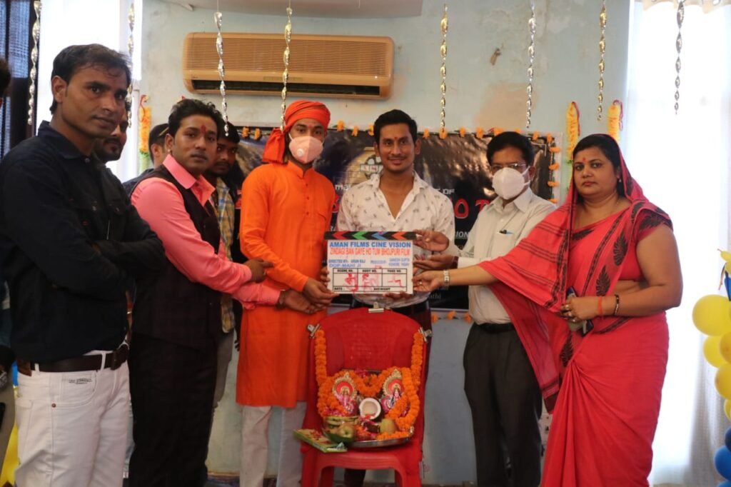 मुंबई| अमन फिल्म्स सिने विज़न बैनर तले निर्मित की जा रही भोजपुरी फिल्म जिंदगी बन गये हो तुम का मुहूर्त विधिवत पूजा अर्चना करके किया गया है। इस फ़िल्म के मुहूर्त की पूजा प्रवीण महाराज जी द्वारा कराई गई। मुहूर्त के शुभ अवसर पर गोरखपुर के एडीएम श्री राकेश श्रीवास्तव मुख्य अतिथि के रूप में उपस्थित थे। प्रमुख अतिथि के रूप सांसद रवि किशन के प्रतिनिधि समरेन्द्र विक्रम सिंह एवं भाजपा नेत्री सुषिता पासवान मौजूद थे। साथ ही गोरखपुर के कई मानिंद व संभ्रांत दिग्गज हस्तियां फिल्म की पूरी टीम को बधाई व शुभकामनाएं देने फिल्म के मुहूर्त में शामिल हुए। फिल्म के मुहूर्त पर सभी जानी मानी हस्तियों ने फिल्म की सफलता की कामना की और पूरी टीम को बधाई दी।