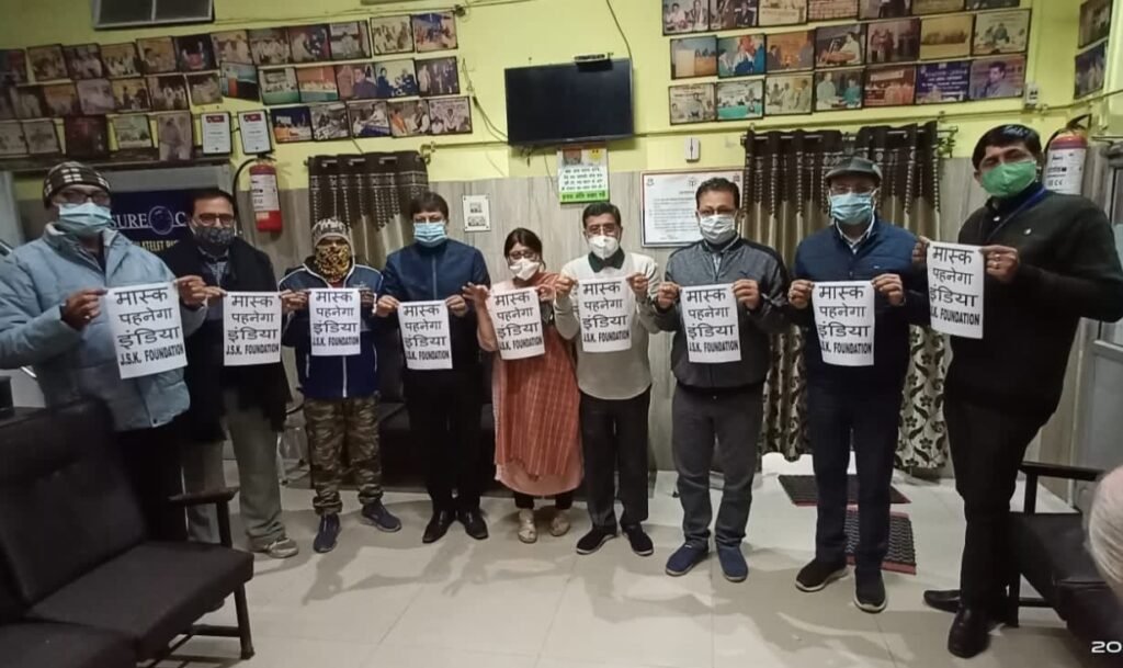 जय श्री कृष्णा फॉउंडेशन की अपील सभी लोग मास्क लगाकर ही कही निकले, वर्तमान परिवेश में कोरोना से लड़ाई में मास्क सबसे कारगर माध्यम है, सही मास्क खुद भी लगाए और दूसरों को भी प्रेरित करे। संस्थापक संजीव अग्रवाल ने अनुरोध किया कि “मास्क पहनेगा इण्डिया” के इस अभियान को जन जन तक पहुचना है। आज इस अभियान की अपचारिक शुभारंभ डॉ अजीत सैगल के मंगलम क्लीनिक से हुआ। उन्होंने सभी से मास्क सही से लगाने पर बल दिया। नीरज शर्मा ने जानकारी दी कि इस अभियान को पूरे भारत वर्ष में सोशल मीडिया के माध्यम से जागरुक का प्रयास भी होना है स्वागत अरविंद जैन व धन्यवाद प्रदीप मेहरोत्रा एवं संचालन दीपक श्रीवास्तव ने किया। डॉ बेला सहगल, रंजीत चड़ढा, अभिषेक भटाचार्या, इंदर गुनेचा आदि सदस्य मौजूद रहे।