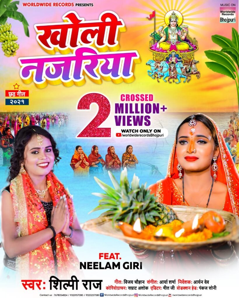 भोजपुरी सिंगर शिल्पी राज और अदाकारा नीलम गिरी के गाने का इंतजार लोग बहुत बेसब्री से करते हैं। ट्रेंडिंग सिंगर शिल्पी राज और ट्रेंडिंग गर्ल नीलम गिरी का छठ गीत ‘खोली नजरिया’ वर्ल्डवाइड रिकार्ड्स भोजपुरी के ऑफिसियल चैनल पर रिलीज किया गया था। सांग को 2 मिलियन से ज्यादा व्यूज मिल चुके हैं। और सांग सोशल मीडिया में तेजी से वायरल हो रहा है। सांग में शिल्पी राज की आवाज पर नीलम गिरी एक बार फिर से अपनी अदाओं को जलवा बिखेरती नजर आ रही हैं। सांग में नीलम गिरी हर बार की तरह इस बार भी अपने ट्रेडिशनल लुक में सभी को अपना दीवाना बनाने में कामयाब रही हैं। पीले और लाल रंग की साड़ी नीलम गिरी के लुक में चार चांद लगा रहा है।