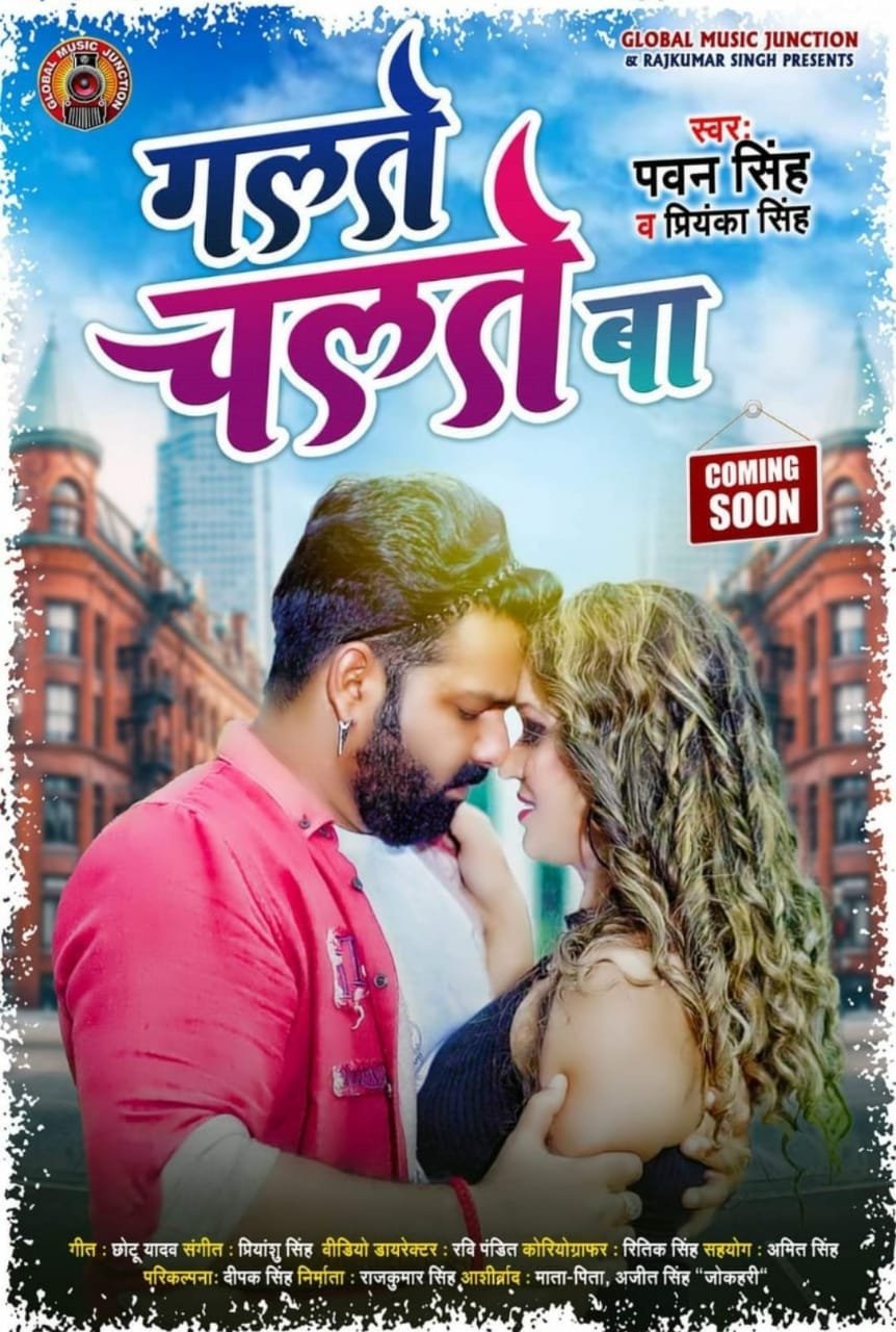 पॉवर स्टार पवन सिंह के गाने तो यूटयूब पर आते ही धमाल मचाते रहते हैं। उनके गाने वायरल होते हैं और युट्युब के ट्रेंडिंग लिस्ट में आते हैं। और अब आरा में दोबारा से धमाका करने के बाद पवन सिंह का गलते चलते बा का फर्स्ट लुक लांच कर दिया गया है। सोशल मीडिया पर भोजपुरिया दर्शक काफी पसंद कर रहे हैं। पोस्टर में साफ साफ देखा जा सकता है कि पवन सिंह और ऎक्ट्रेस का रोमांटिक अंदाज दिख रहा है। यह गाना ग्लोबल म्यूज़िक जंक्शन के ऑफिसियल यूटयूब चैनल पर रिलीज किया जाएग। इस गाने को पवन सिंह के साथ प्रियंका सिंह ने खूबसूरत आवाज में गाया है। इसके खूबसूरत गीत लिखे हैं छोटु रावत ने और म्यूज़िक दिया है प्रियांशू सिंह ने।