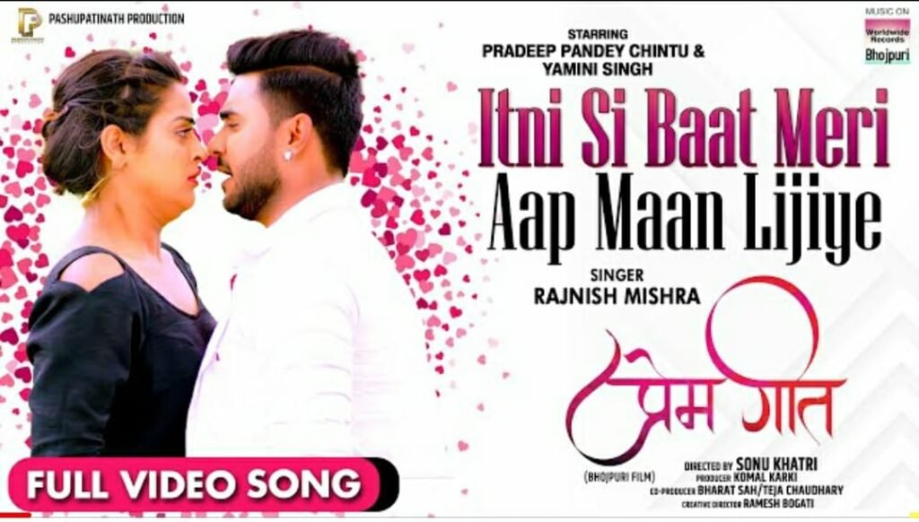 मुंबई| भोजपुरी सुपरस्टार प्रदीप पांडेय चिन्टू और एक्ट्रेस यामिनी सिंह स्टारर भोजपुरी फिल्म ‘प्रेम गीत’ का एक बेहतरीन रोमांटिक गाना ‘इतनी सी बात मेरी आप मान लीजिए’ वर्ल्डवाइड रिकॉर्ड्स भोजपुरी म्यूजिक कंपनी से रिलीज किया गया है। इस गाने को यूट्यूब पर काफी व्यूज मिल रहे हैं। इस गाने में प्रदीप पांडेय चिन्टू और यामिनी सिंह की रोमांटिक जोड़ी खूबसूरत दिखाई दे रही है।