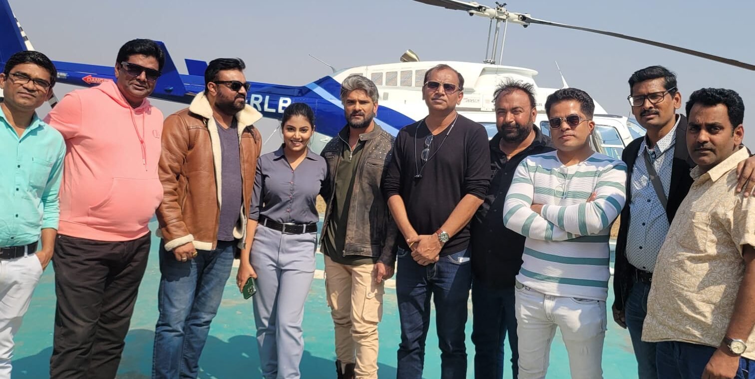 हेलीकॉप्टर शॉट के साथ संपन्न हुई निर्माता रत्नाकर कुमार और खेसारी लाल यादव की भोजपुरी फिल्म संघर्ष 2