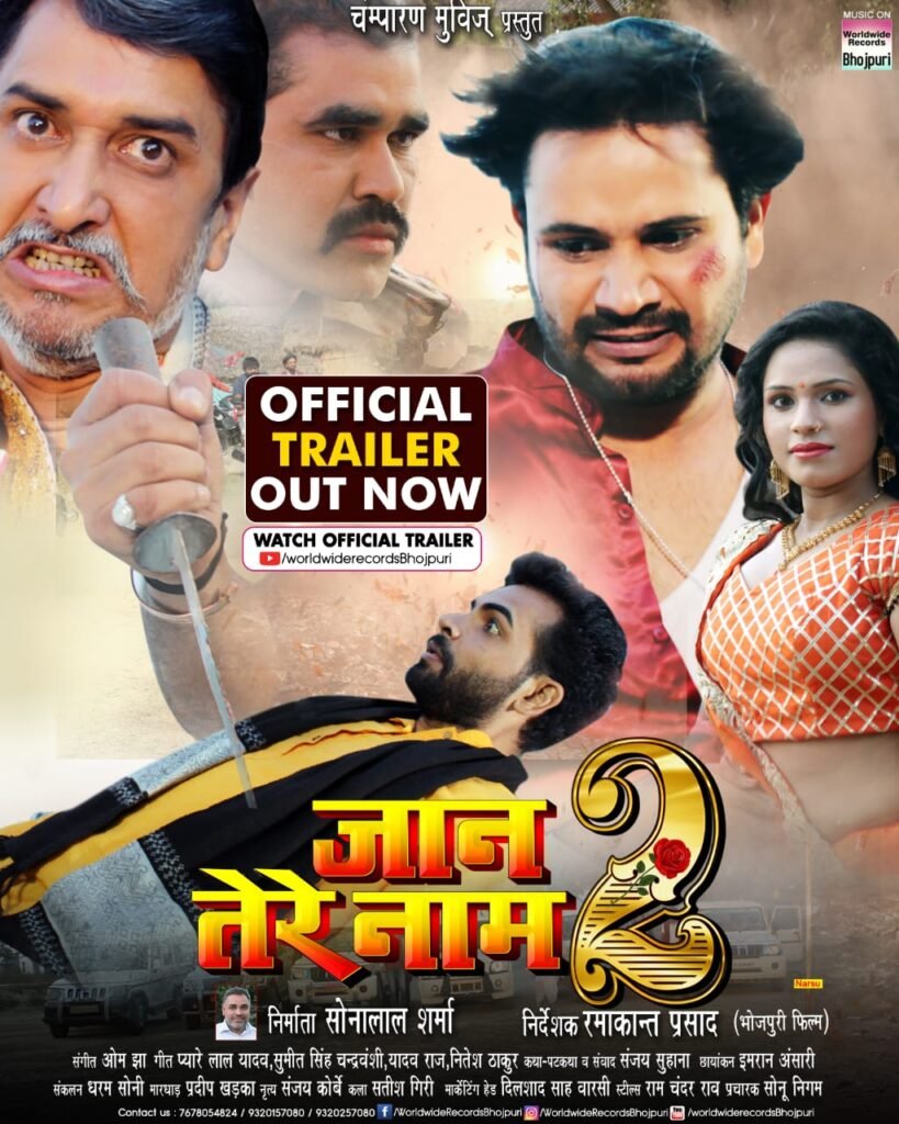 भोजपुरी सिनेमा के मशहूर निर्देशक रमाकांत प्रसाद की आने वाली भोजपुरी फिल्म “जान तेरे नाम 2” का धमाकेदार ट्रेलर वर्ल्डवाइड रिकार्ड्स पर लॉन्च किया गया है. लॉन्च होते ही ट्रेलर सोशल मीडिया में वायरल हो गया है. फिल्म का ट्रेलर बता रहा है कि ये एक साफ सुथरी, पारिवारिक मनोरंजक फिल्म है.