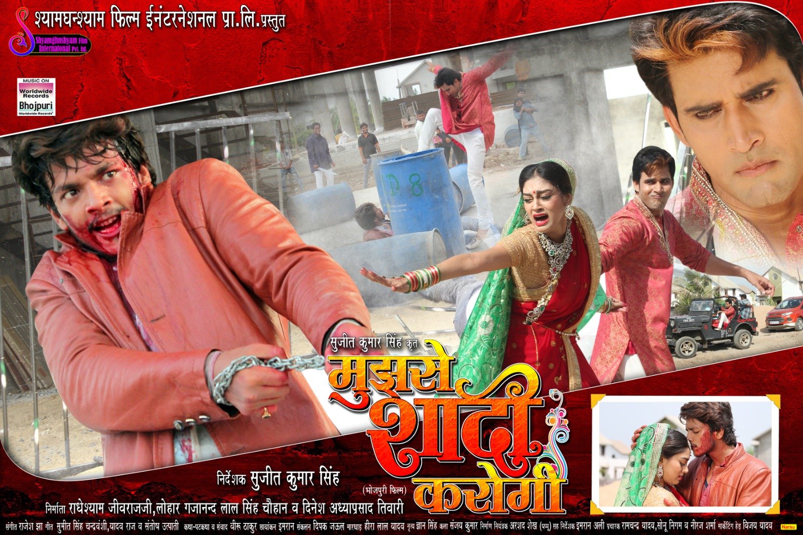 गौरतलब है कि श्याम घनश्याम फिल्म इंटरनेशनल प्रा.लि. प्रस्तुत धमाकेदार भोजपुरी फिल्म ‘मुझसे शादी करोगी’ के निर्देशक सुजीत कुमार सिंह हैं। फ़िल्म के निर्माता राधेश्याम जीवराजजी लोहार, गजानन्द लाल सिंह चौहान व दिनेश अध्याप्रसाद तिवारी हैं। संगीतकार राजेश झा ने गीतकार सुमीत सिंह चन्द्रवंशी, यादव राज व संतोष उत्पाती के लिखे गीतों को मधुर संगीत से सजाया है। इस फिल्म का गीत-संगीत बहुत ही मधुर व कर्णप्रिय बनाया गया है। फिल्म की कथा-पटकथा व संवाद वीरू ठाकुर ने लिखा है। छायांकन इमरान, संकलन दिपक जऊल, मारधाड़ हीरा लाल यादव, नृत्य ज्ञान सिंह, कला संजय कुमार का है। निर्माण नियंत्रक अरशद शेख (पप्पू) हैं। सह निर्देशक इमरान अली, प्रचारक रामचन्द्र यादव, सोनू निगम व नीरज शर्मा हैं। मार्केटिंग हेड विजय यादव हैं।