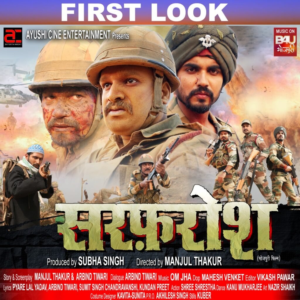 वाकई रितेश पांडे मुबारकबाद के पात्र हैं कि उन्होंने ऐसे माहौल में एक देश भक्ति वाली फिल्म लेकर आने का सोचा है। भोजपुरी सिनेमा के मशहूर ऐक्टर रितेश पांडे, जो अपनी गायकी के लिए भी विख्यात हैं, वह अपनी अपकमिंग भोजपुरी फिल्म ‘सरफरोश’ के पहले लुक में बेहद इम्प्रेसिव दिख रहे है। इस शानदार पोस्टर में रितेश पांडे एक गंभीर मुद्रा में और मूंछों के साथ जानदार फौजी के अवतार में दिखाई दे रहे हैं। वह आक्रामक लुक में दुश्मनों से बदला लेने के लिए तैयार हैं। फिल्म आतंकवाद की स्थिति पर आधारित है।