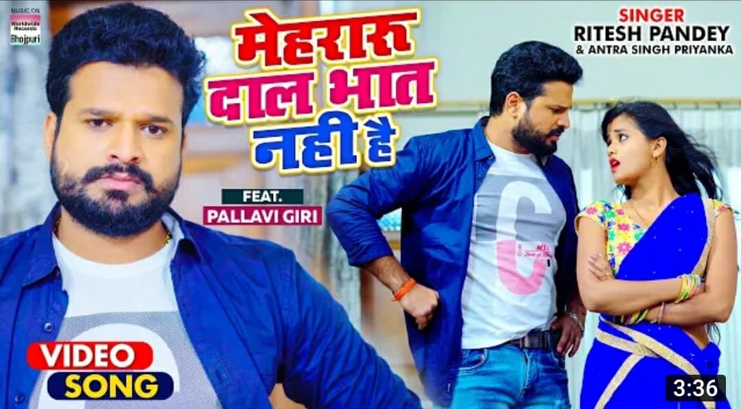 भोजपुरी सुपरस्टार रितेश पांडे इन दिनों अपने गानों से धमाल मचाए हुए हैं। उनकी फैन फॉलोइंग के चलते ही उनका हर गाना कुछ ही घंटों में मिलियन क्लब में पहुंच जाता है। अब रितेश पांडे और अंतर सिंह प्रियंका की आवाज में नया सांग ‘मेहरारू दाल भात नहीं है’ वर्ल्डवाइड रिकार्ड्स भोजपुरी के ऑफिसियल यूट्यूब चैनल पर जारी किया गया है, जो रिलीज होते ही वायरल हो गया है। गाने को कुछ ही समय में लाखों व्यूज मिल गए हैं। गाने में एक बार फिर से रितेश के साथ भोजपुरी एक्ट्रेस पल्लवी गिरी ने कदम से कदम मिलाया।