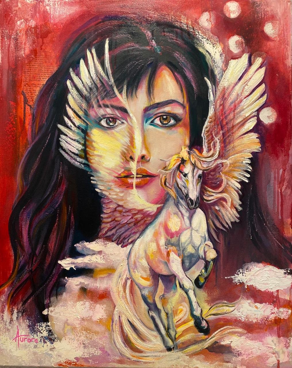With multiple layers or various mediums Aurora builds up her paintings to unlock a world if aspirations for others to explore.