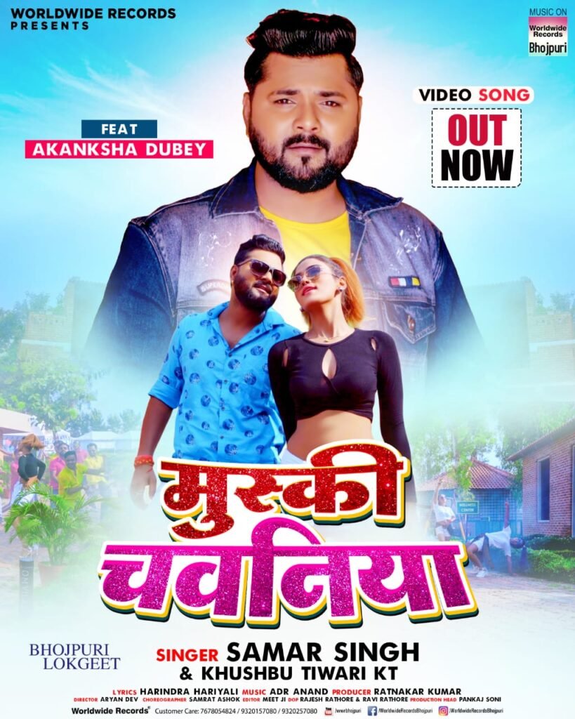 आ गया एक बार फिर वही हिट जोड़ी देसी स्टार समर सिंह और हॉट एक्ट्रेस आकांक्षा दुबे का धमाल वाला भोजपुरी लोकगीत “मुस्की चवनिया”, जिसे वर्ल्डवाइड रिकॉर्ड्स भोजपुरी के ऑफिशियल यूट्यूब चैनल से है रिलीज किया गया है। इस धमाल गाने को समर सिंह ने अपने खास शैली में गाया है और उनके स्वर में स्वर मिलाया है पापुलर सिंगर खुशबू तिवारी केटी ने। वाकई यह गाना सुनने में जितना अच्छा लगता है, उतना ही वीडियो देखने में बेहतरीन लग रहा है। समर सिंह, खुशबू तिवारी केटी और आकांक्षा दुबे की तिकड़ी वाकई काफी मजेदार है। यह गाना अलग हटकर काफी रिच लोकेशन पर शूट किया गया है। जोकि बहुत ही मनोहारी लग रहा है।
