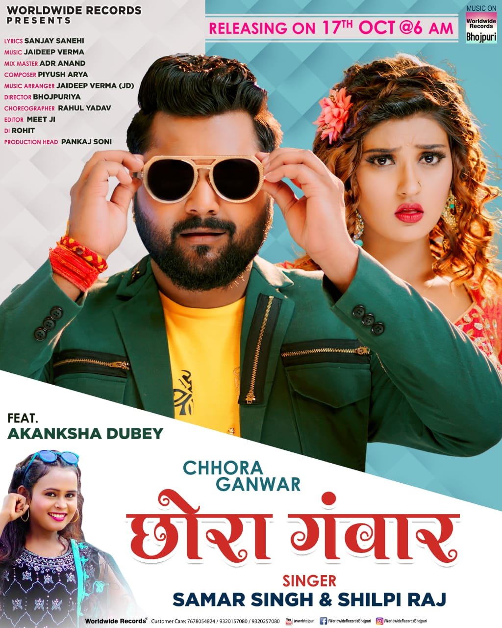 वर्ल्डवाइड रिकार्ड्स के धमाकेदार सप्ताह का दूसरा धमाकेदार सांग ‘छोरा गंवार’ 17 अक्टूबर को सुबह 6 बजे देसी स्टार समर सिंह और ट्रेंडिंग सिंगर शिल्पी राज की आवाज में जारी होने जा रहा है। इस सांग में देसी स्टार समर सिंह को ‘छोरा गंवार’ होने की पदवी कोई और नहीं बल्कि उनके साथ कई हिट सांग दे चुकी अभिनेत्री आकांक्षा दुबे दे रही हैं। इन दोनों की जोड़ी को भोजपुरी इंडस्ट्री की हॉट जोड़ी भी कहा जाता है इसका कारण भी है, क्योंकि दोनों पर फिल्माया गाने तुरंत ही सोशल मीडिया में वायरल हो जाते हैं। और मिलेनियम क्लब में शामिल हो जाते हैं। अब समर सिंह और आकांक्षा दुबे का ‘छोरा गंवार’ वर्ल्डवाइड रिकार्ड्स भोजपुरी के ऑफिशियल यूट्यूब चैनल से 17 अक्टूबर को जारी होने जा रहा है।