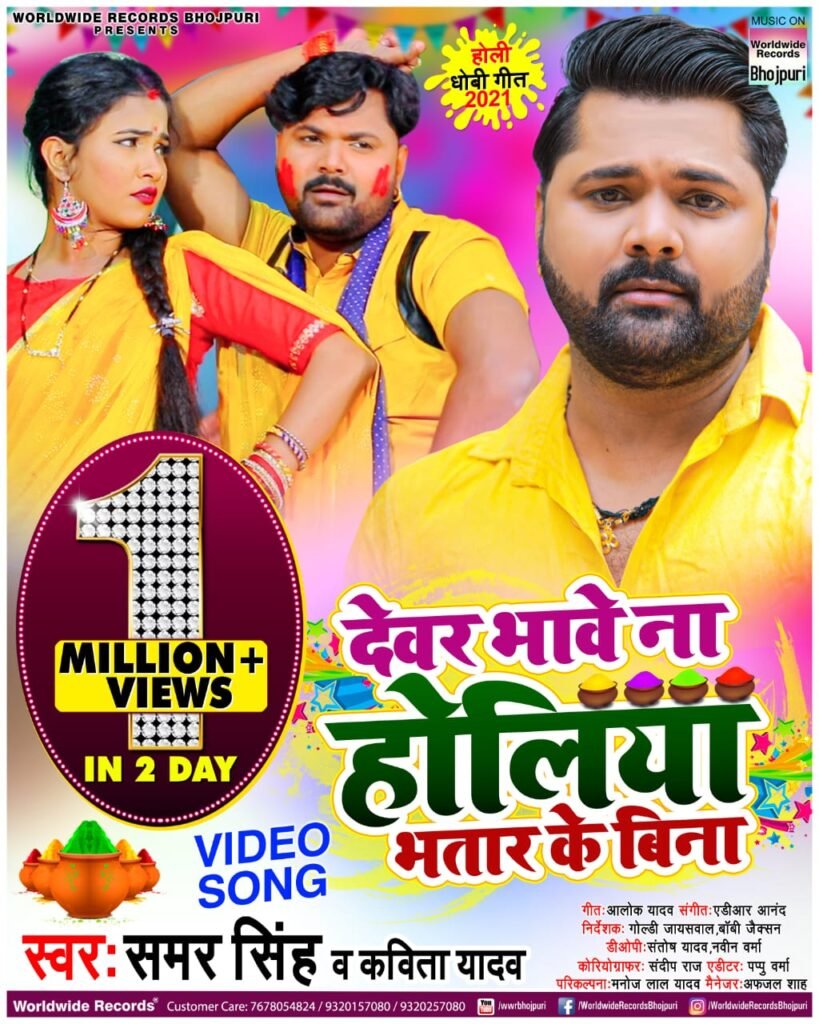 मुंबई : देसी स्टार समर सिंह का जबरदस्त होली गाना “देवर भावे ना होलिया भतार के बिना” ने यूट्यूब पर 1 मिलियन व्यूज पार कर लिया है। जिसे वर्ल्डवाइड रिकॉर्ड्स भोजपुरी के ऑफिसियल यूट्यूब चैनल पर रिलीज किया गया है। इस गीत को खूब पसंद किया जा रहा है और खूब देखा व सुना भी जा रहा है।