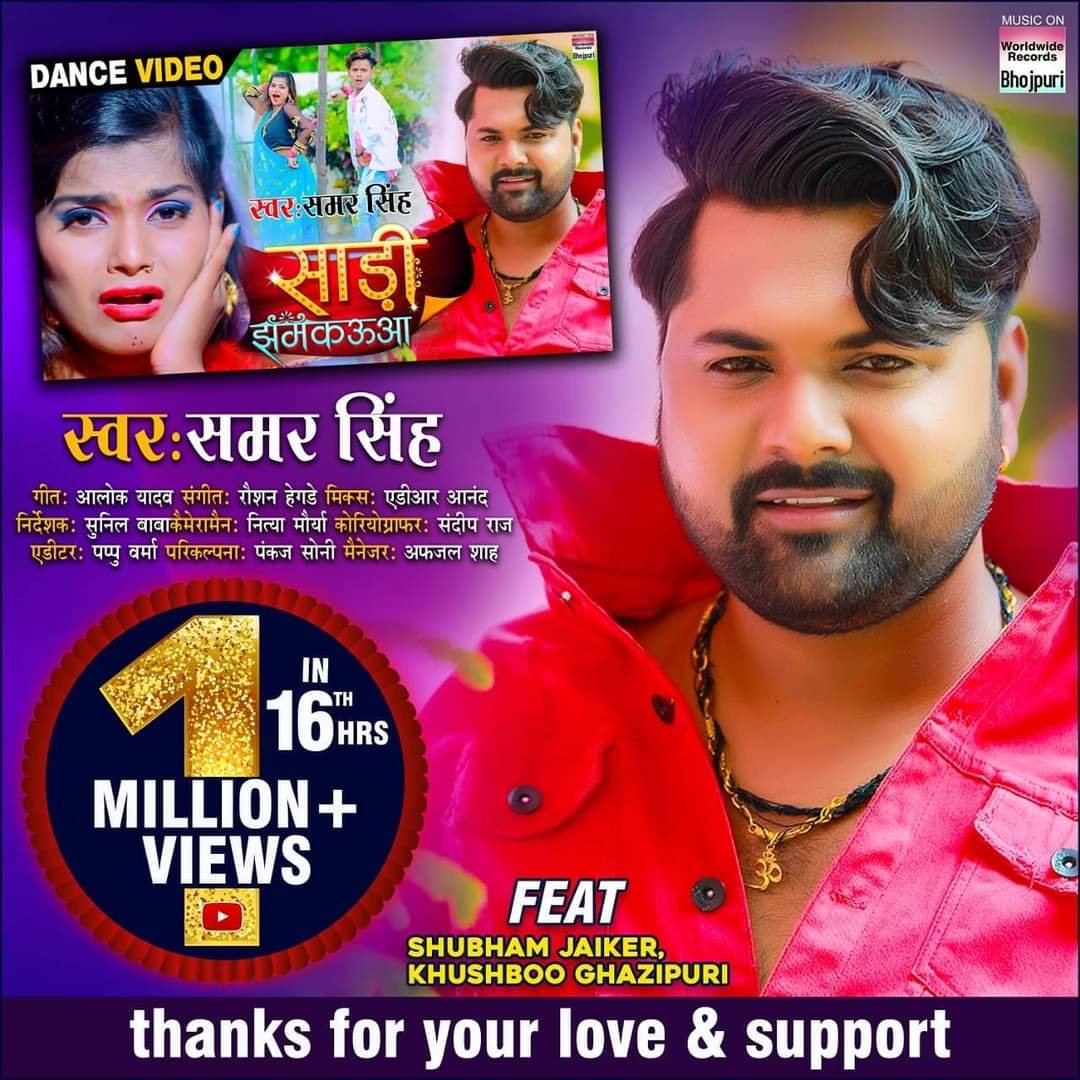 समर सिंह का वीडियो सांग साड़ी झमकऊवा 16 घन्टे में 1 मिलियन व्यूज