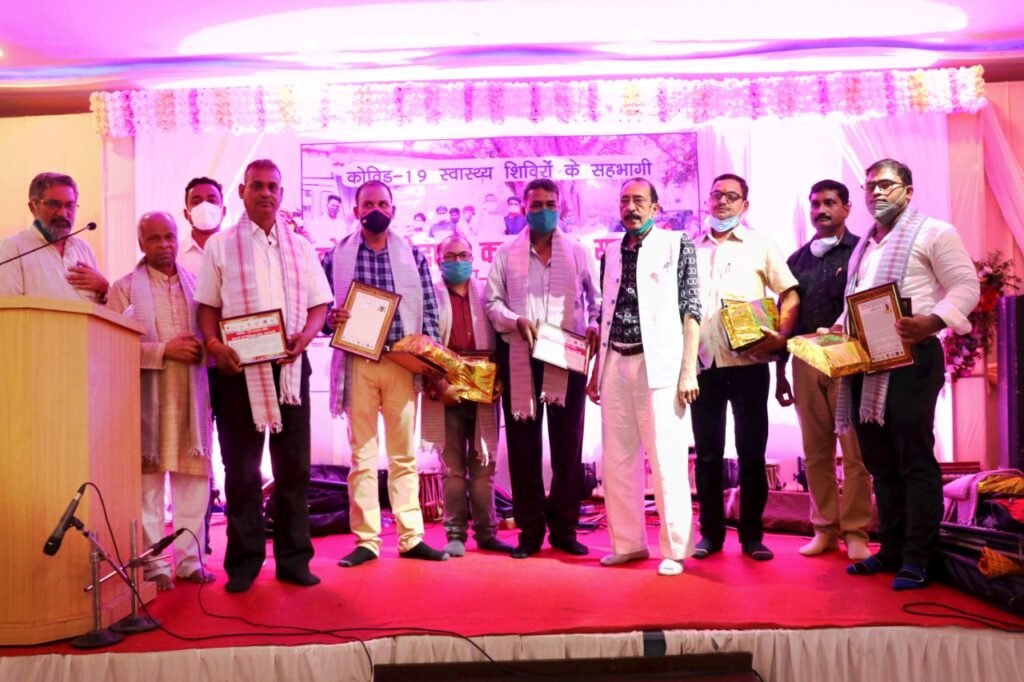 बनारस के समाजसेवी संगठनों की ओर से मई, जून और जुलाई महीनों में कोविड के दूसरे लहर के खिलाफ जिले के विभिन्न गाँवों में आयोजित स्वास्थ्य शिविरों सेवा देने वाले डॉक्टरों, नर्सों और स्वयं सेवकों के सम्मान में शनिवार शाम को बुद्धविहार कॉलोनी के वन्दनम मैरिज हाल में शाम-ए-ग़ज़ल कार्यक्रम रखा गया | स्वास्थ्य शिविरों में चिकित्सा सेवा देने वाले डॉक्टर जयप्रकाश पाल, डॉ.अनिल सिंह पटेल, डॉ. मनोज उपाध्याय, डॉ.अनुज पाण्डेय, डॉ. पंकज कुमार सिंह, डॉ.परवेज़ आलम, डॉ.हरिशंकर शुक्ला और डॉ.विजय कुमार शुक्ला को अंगवस्त्र, प्रशस्ति पत्र और उपहार देकर सम्मानित किया गया, तथा अन्य 94 स्वास्थ्यसेवी स्वयंसेवकों को अंगवस्त्र और प्रमाण पत्र दिए गए| सम्मानित होने वालों में प्रेरणा कला मंच के सभी कलाकार भी शामिल थे, जिन्होंने अपने गीतों और नुक्कड़ नाटकों के माध्यम से कोविड-१९ पर जनजागरूकता का कार्य किया था | इस अवसर पर अराजी लाइन और सेवापुरी विकास खण्डों के सभी गाँव में स्वास्थ्य शिविरों का आयोजन, आर.टी.पी.सी.आर जांच एवं टीकाकरण का आयोजन करनेवाले नंदलाल मास्टर ‘वीर जन योद्धा’ पुरस्कार से अलंकृत किये गये |
