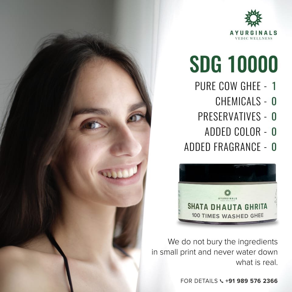 • Shata Dhauta Ghrita (SDG) is a traditional preparation that penetrates all the 7 layers of your skin.