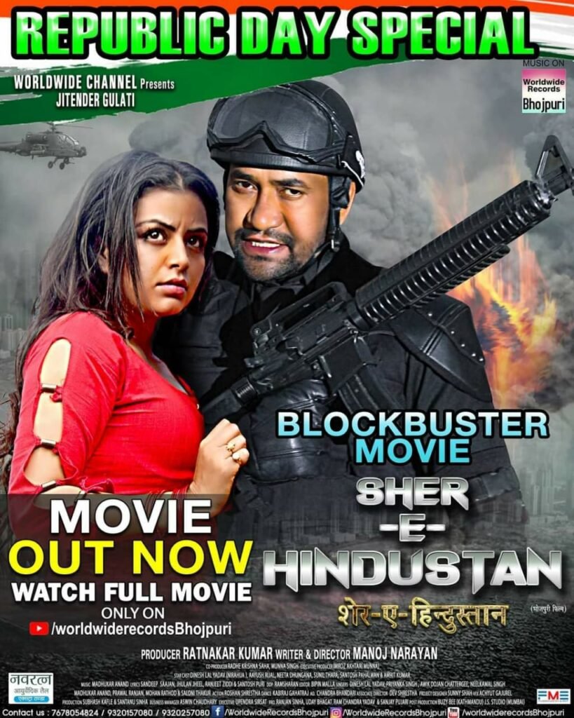 मुंबई| वर्ल्डवाइड चैनल और जितेंद्र गुलाटी प्रस्तुत जुबली स्टार दिनेशलाल यादव निरहुआ की भोजपुरी फिल्म ‘शेर ए हिंदुस्तान’ आज गणतंत्र दिवस के अवसर पर वर्ल्डवाइड रिकार्ड्स भोजपुरी के ऑफिसल यूट्यूब चैनल पर रिलीज हो गई है। फिल्म देश के उन वीरों की कहानी है, जो दिनरात एक कर देश की सीमा की रक्षा करते हैं। इस फिल्म में दिनेशलाल यादव निरहुआ कमांडो की भूमिका में नजर आ रहे हैं। फिल्म पूरी तरह से कमर्सियल है, लेकिन इसमें भारत के वीर सपूतों के शहादत के बाद के हालत को भी दर्शकों के सामने लाने की कोशिश की गई है। फिल्म ‘शेर ए हिंदुस्तान’ में निरहुआ के अपोजिट फीमेल लीड में नीता ढुंगाना हैं। फिल्म में निरहुआ एक तेज़ तर्रार ब्लैक कमांडो का किरदार निभा रहे हैं जो अपनी चुस्ती और विशेष युद्ध तकनीकों के लिए जाने जाते हैं।