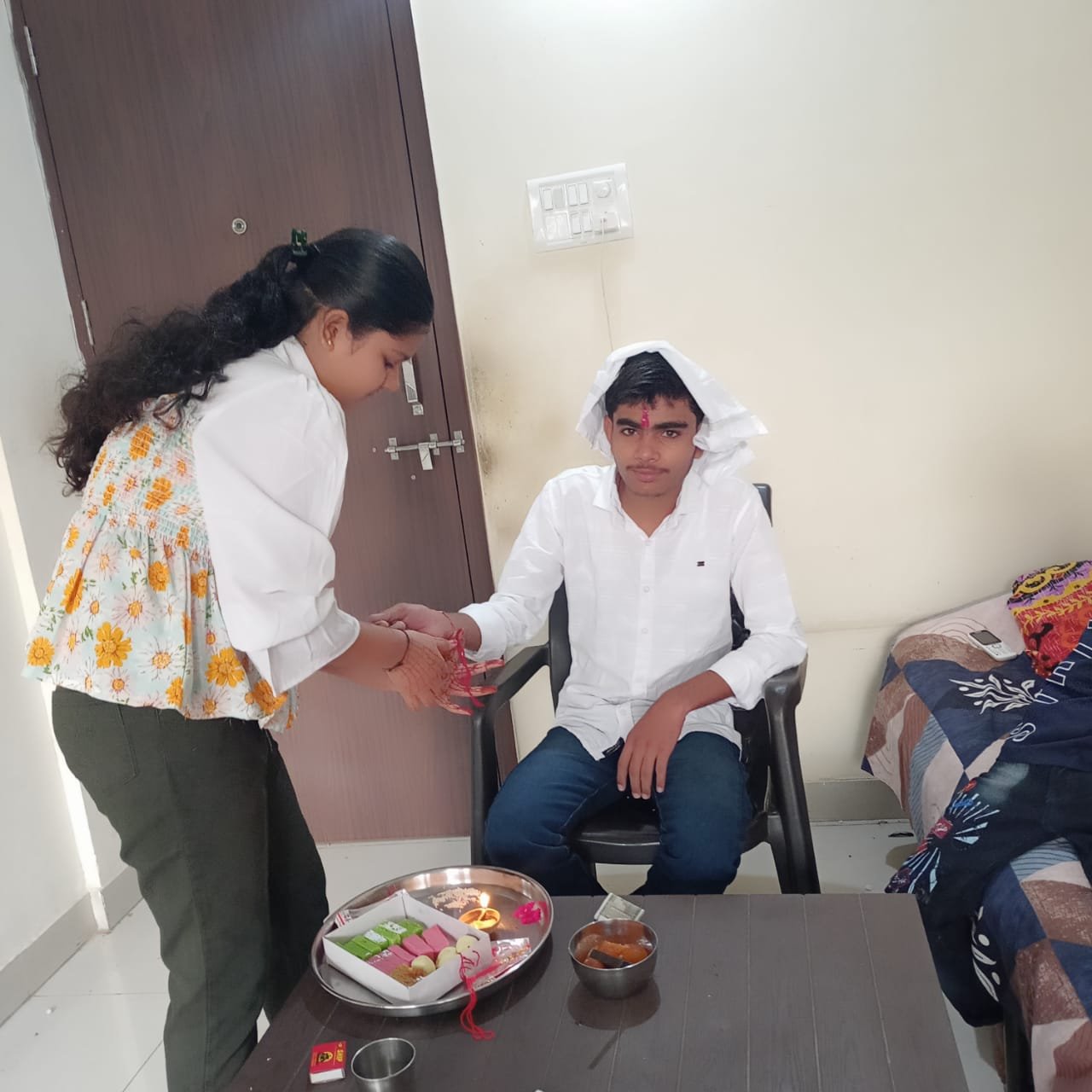 वहीं भाईयों ने भी बहनों को उपहार देकर हमेशा साथ निभाने का वादा किया। इस दौरान मुंह मीठा करने का दौर भी जारी रहा। र के बुढे- बुजुर्गों का पैर छूकर आशिर्वाद लिया। सुबह में ही अधिकांश बहनों ने भाई की कलाई पर राखी सजाई और उपहार पाकर अपनों के साथ खुशियां मनाई सुबह से शुरू हुआ इन्हीं भावनाओं के साथ सुबह से ही तैयारी कर रही बहनों ने भाइयों के हाथों में राखियां बांधी।