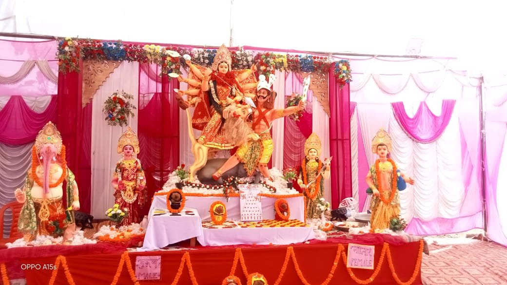 राई (कित्ता) के दुर्गा पूजा पंडाल में स्थापित हुई माँ दुर्गा की प्रतिमा
