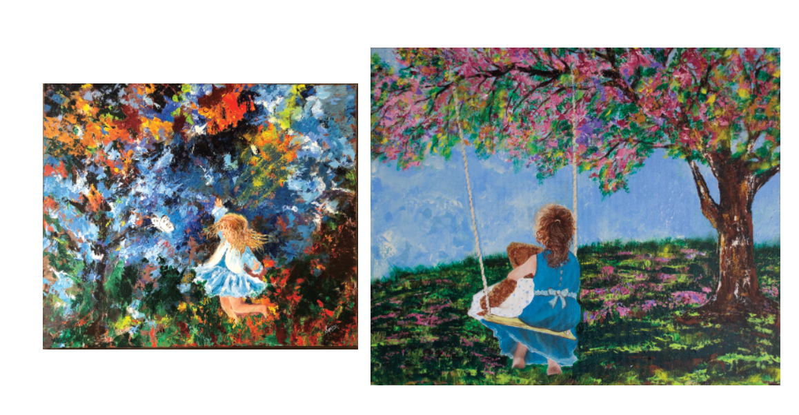 “Painting brings me happiness and it is through art that I try to capture what I cannot express in words. My paintings are diverse. I continually shift between contemporary realism and abstract art and also love the use of palette knife in my work. There are times I like focusing on realism especially human figure and there are times that I paint a little bold and add various textures to my paintings. I spent years painting in Oil and then fell in love with Acrylics and Oil Pastels as well. In some of my paintings I try to capture the little moments from my childhood.
