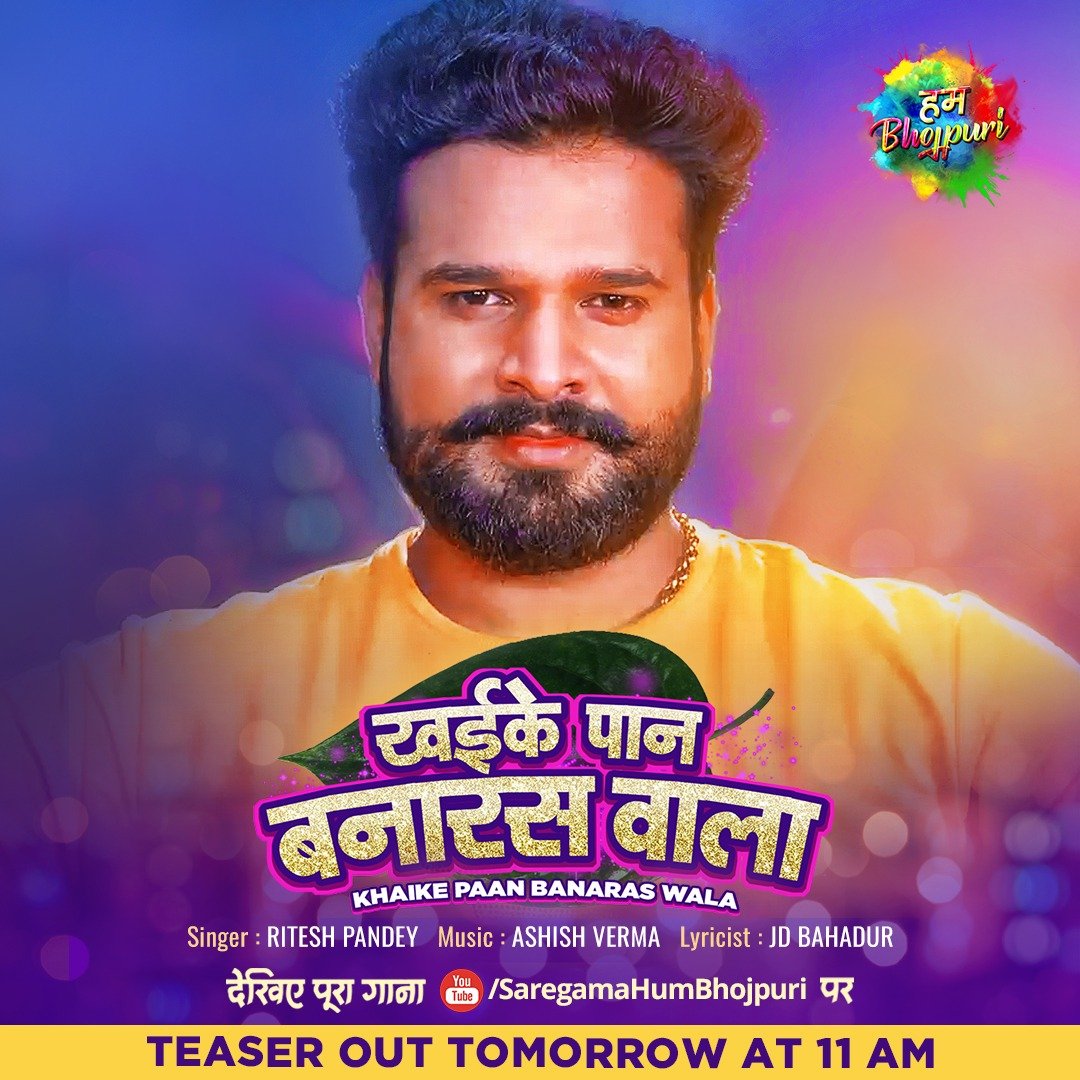 अमिताभ बच्चन के अभिनय से सजी अपने समय की क्लासिक एक्शन फिल्म डॉन का एक गाना खइके पान बनारस वाला दर्शकों के बीच काफी लोकप्रिय हुआ था जिसे किशोर कुमार ने गाया था। अब भोजपुरी के सुपर स्टार रितेश पांडे इसी नाम का गाना लेकर आ रहे हैं। यह गाना जल्द ही रिलीज होगा। रितेश पांडे के धमाकेदार सांग “खइके पान बनारस वाला” का टीज़र कल 4 सितंबर को सुबह 11 बजे सारेगामा हम भोजपुरी के ऑफिसियल यूटयूब चैनल पर रिलीज होने जा रहा है।