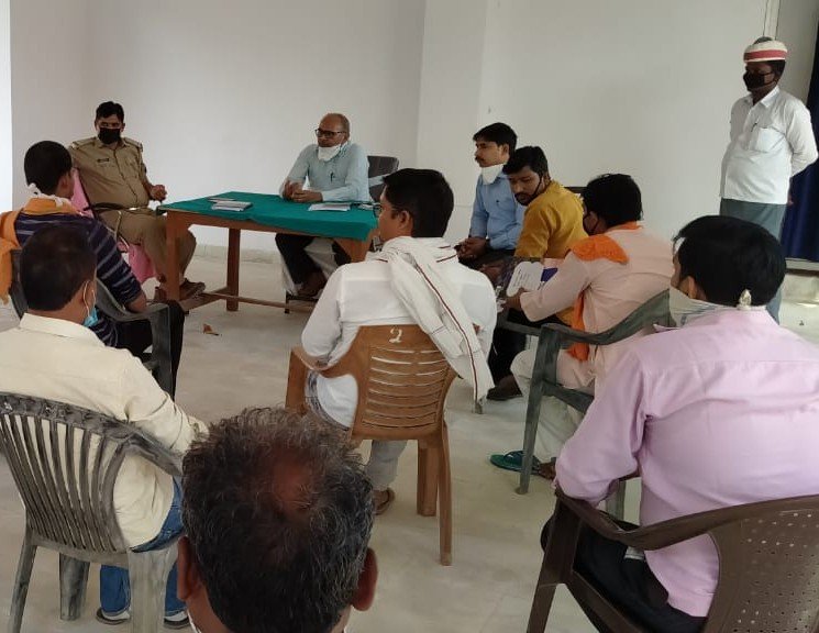 तहसीलदार ने लिया थाना परिसर में व्यापारियों से खाद्यान्न वितरण का विवरण