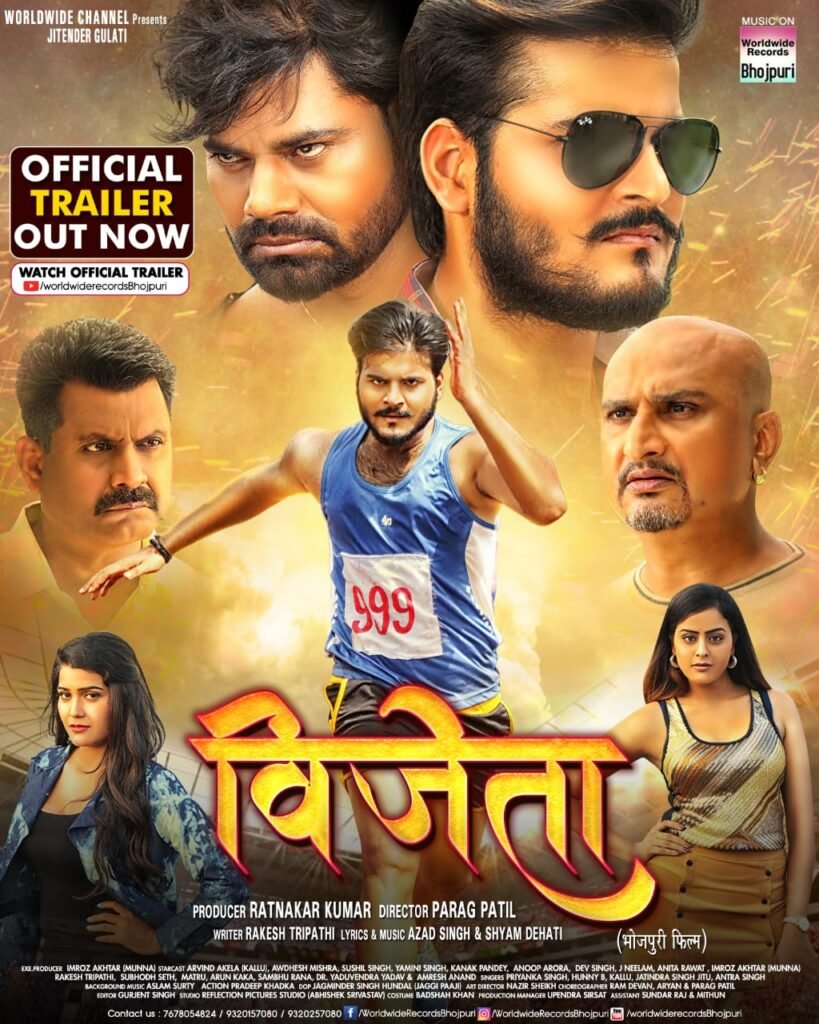 वर्ल्डवाइड चैनल एवं जीतेन्द्र गुलाटी प्रस्तुत अरविन्द अकेला कल्लू और यामिनी सिंह के शानदार अभिनय से सजी भोजपुरी फिल्म विजेता का धमाकेदार ट्रेलर वर्ल्डवाइड रिकार्ड्स भोजपुरी म्यूजिक कंपनी के ऑफिसियल यूट्यूब चैनल से लांच हो गया है। इस फिल्म में युवा दिलों की धड़कन सुपरस्टार अरविन्द अकेला कल्लू रोमांटिक भूमिका में हैं। उनके साथ यामिनी सिंह की रोमांटिक जोड़ी है। इस फिल्म में सिनेतारिका कनक पांडेय भी जलवा बिखेरने वाली हैं।
