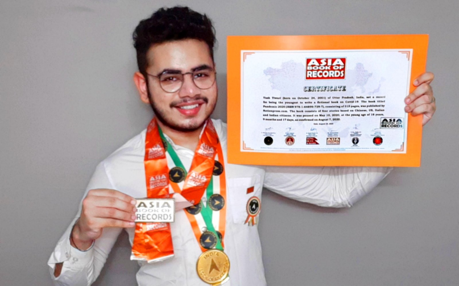 Yash Tiwari, a TEDx speaker, Josh Talk speaker, international Youth Mentor, and a Record Holding Awarded Author – all at the age of 18, has recently authored the world’s first fiction on the ongoing Coronavirus outbreak – PANDEMIC 2020 – Rife Of The Virus, for which he has also been awarded by the India Book Of Records and ASIA BOOK OF RECORDS as well.